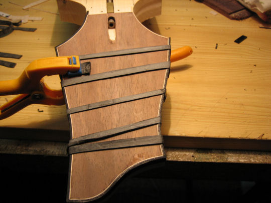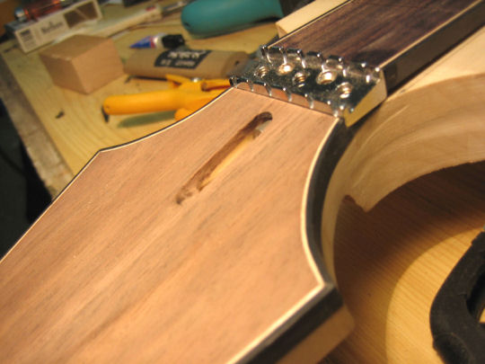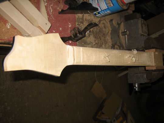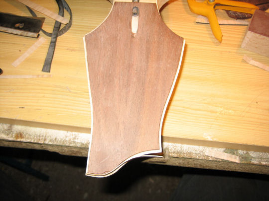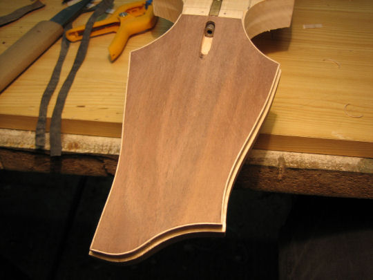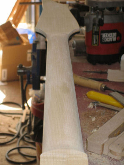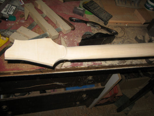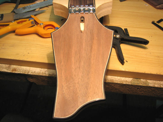 La tête est quasiment terminée, il restera l’incrustation en nacre et le perçage des mécaniques